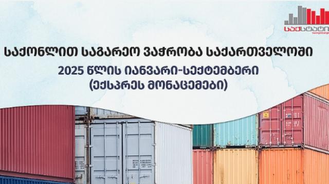 სტატისტიკის ეროვნული სამსახურის მონაცემებით, 2025 წლის იანვარ-სექტემბერში საქართველოში საქონლით საგარეო სავაჭრო ბრუნვამ (არადეკლარირებული ვაჭრობის გარეშე) 18 545.0 მლნ. აშშ დოლარი შეადგინა, რაც წინა წლის შესაბამისი პერიოდის მაჩვენებელზე 9.1%-ით მეტია.