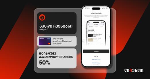 ახალი შეთავაზება, მომხმარებლებს საშუალებას აძლევს სრულად ონლაინ გახდნენ ლიბერთის მომხმარებლები, ავტომატურად გაუაქტიურდეთ Mastercard-ის ციფრული ბარათი და მინიმუმ 50 ლარიანი ტრანზაქციის შესრულებისას დაიბრუნონ გადახდილი თანხის 50%, მაქსიმუმ 50 ლარის ოდენობით.