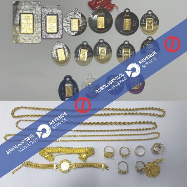 კერძოდ, მებაჟე ოფიცრებმა, ეჭვის საფუძველზე, საქართველოსა და უცხო ქვეყნის მოქალაქეების როგორც ფიზიკური, ასევე კუთვნილი ბარგის დეტალური დათვალიერების შედეგად არადეკლარირებული 15 ცალი ოქროს ზოდი (საერთო წონა: 22 გრამი) და ოქროს საიუველირო ნაკეთობები (საერთო წონა: 160 გრამი) აღმოაჩინეს.