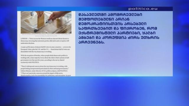 IPSOS-ის კვლევა Politico-მ გამოაქვეყნა. სტატიის თანახმად, გამოკითხვა იმ დროს ტარდება, როდესაც მზარდია შეშფოთება, რომ დასავლეთში დემოკრატია საფრთხის ქვეშაა. რესპონდენტების აბსოლუტური უმრავლესობა უკმაყოფილოა თვითმმართველობის სისტემების წინაშე არსებული პრობლემებით. მმართველ გუნდში ფიქრობენ, რომ გამოკითხვამ ნათლად წარმოაჩინა ის საფრთხეები, რაც დასავლეთის ბევრ ქვეყანაში დემოკრატიული განვითარების კუთხით არსებობს. უმრავლესობის დეპუტატების განცხადებით, უცხოელი მოქალაქეების მიერ გამოთქმული კრიტიკა იმ ბრალდებების იდენტურია, რომელსაც საქართველოს ხელისუფლება ევროპულ ბიუროკრატიას უყენებს.