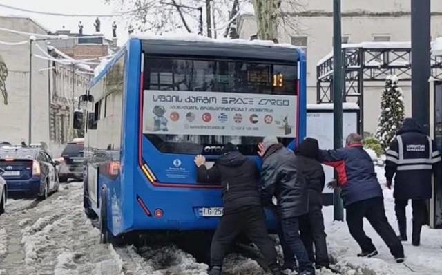 ქუთაისში, მეორე დღეა ინტენსიურად თოვს, რამაც ქალაქში პრობლემები შექმნა -  მოქალაქეები საზოგადოებრივ ტრანსპორტს გადაადგილებაში მეორე დღეა, ეხმარებიან.