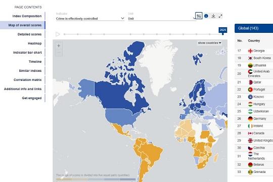 კანონის უზენაესობით საქართველო აღმოსავლეთ ევროპის და ცენტრალური აზიის რეგიონში პირველ ადგილზე გავიდა. გამოკვლევის ფარგლებში, დანაშაულის კონტროლის ეფექტიანობის მსოფლიო რეიტინგიც გამოქვეყნდა, სადაც საქართველომ შეფასების 100-პროცენტიანი სისტემით 92% მიიღო და მსოფლიოს საუკეთესო ოცეულში მე-17 ადგილზე გავიდა.