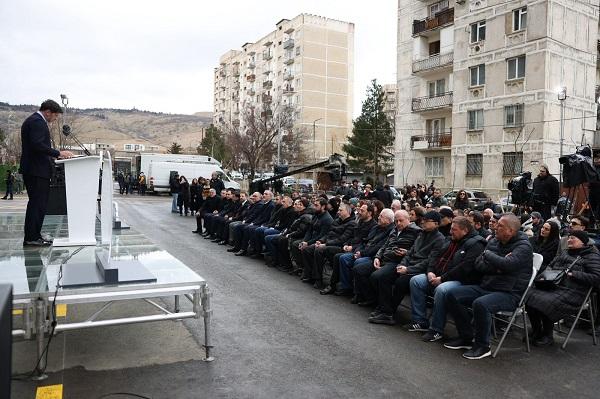 ბინების სიმბოლური გასაღებები მოქალაქეებს დედაქალაქის მერმა კახა კალაძემ გადასცა და მათ ახალმოსახლეობა მიულოცა.
