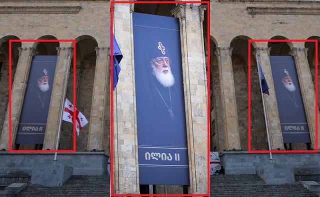 სახელმწიფო შენობებზე პატრიარქ ილია მეორის ბანერები გადმოფინეს - ბანერი უკვე განთავსდა რისთაველის გამზირზე, პატლამენტის შენობის ფასადზე.