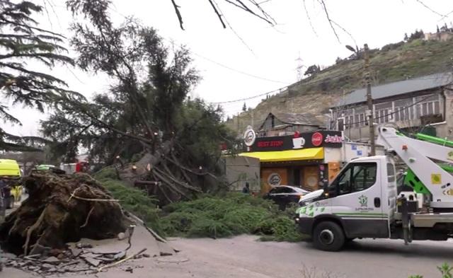 ძლიერი ქარის შედეგად, ქვემო ფონიჭალაში ხე წაიქცა და საკვებ ობიექტს დაეცა.