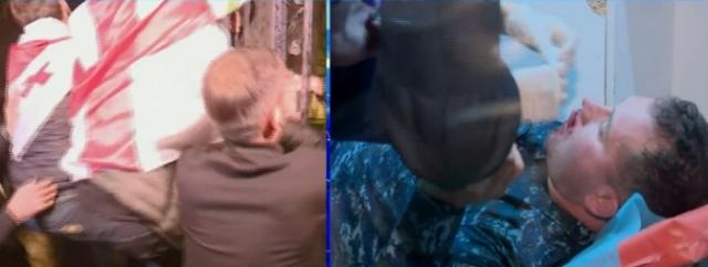 პრეზიდენტის სასახლესთან მომხდარი დაპირისპირების დროს, სამართალდამცველი, სავარაუდოდ, სპეცრაზმის წევრი დაშავდა. მას დაზიანება, სავარაუდოდ, სახის არეში აქვს მიღებული.