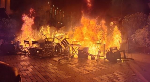 აქციის მონაწილეებმა ათონელის ქუჩაზე, საქართველოს პრეზიდენტის სასახლის მიმდებარე ტერიტორიაზე სხვადასსხვა საგნებს ცეცხლი წაუკიდეს.