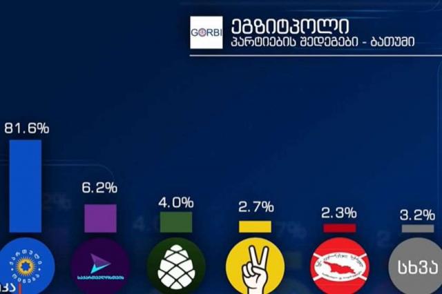 ტელეკომპანია „იმედის“ დაკვეთით, კომპანია GORBI-ის მიერ ჩატარებული ეგზიტპოლის მიხედვით, ბათუმში „ქართულმა ოცნებამ“ ამომრჩეველთა ხმების 81,6% მოიპოვა.