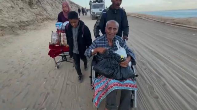 73 წლის რამზი ტაფეშმა ღაზა მაშინ დატოვა, როცა ქალაქში ისრაელელი სამხედროები გამოჩნდნენ. თითქმის ორი წლის შემდეგ, ის ოჯახთან ერთად მშობლიურ ქალაქში ახლა პირველად ბრუნდება. მშვიდობის დამყარებას იმედიანად უყურებს, თუმცა არც იმას გამორიცხავს, რომ დამანგრეველი ომის შემდეგ, სახლის ადგილას ნასახლარი დახვდეს.