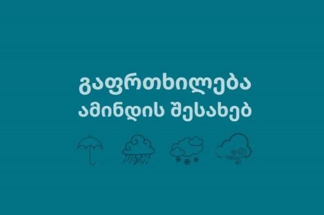 სააგენტოს ინფრომაციით, მოსალოდნელმა ნალექებმა შესაძლებელია, დასავლეთ საქართველოს პატარა მდინარეებზე წყალმოვარდნები, ხოლო გორაკ-ბორცვიან და მთიან ზონებში მეწყრულ-ღვარცოფული პროცესების ჩასახვა-გააქტიურება გამოიწვიოს (საფრთხის დონე დაბალი).