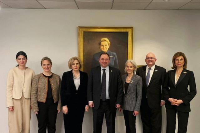საქართველოს საპარლამენტო დელეგაციამ, ამერიკის შეერთებულ შტატებში ვიზიტის ფარგლებში, შეხვედრები გამართა ანალიტიკური ცენტრების - უილსონის ცენტრი, ჰერითიჯის ფონდი და America first policy institute ხელმძღვანელებთან და ექსპერტებთან. შეხვედრებისას, მხარეებმა საქართველოსა და ამერიკის შეერთებულ შტატებს შორის ურთიერთობების გაღრმავების შესაძლებლობებზე ისაუბრეს.