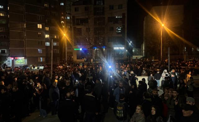 კლინიკასთან, სადაც ცოტა ხნის წინ საქართველოს კათოლიკოს-პატრიარქი გარდაიცვალა, ხალხი იკრიბება. ისინი სანთლებით ხელში დგანან.