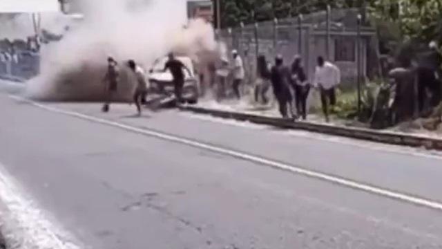 (ვიდეო) შუა ერევნის ცენტრში მანქანა აფეთქდა - კადრები შემთხვევის ადგილიდან