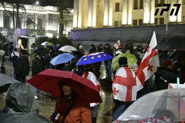 საქართველოს პარლამენტის შენობასთან საპროტესტო აქცია მიმდინარეობს.