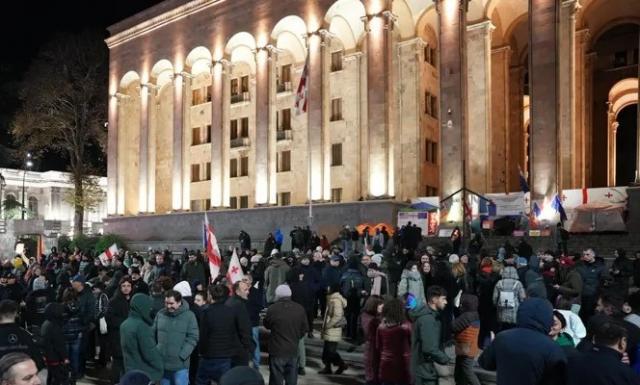 რუსთაველის გამზირზე უწყვეტი პროტესტი მიმდინარეობს.