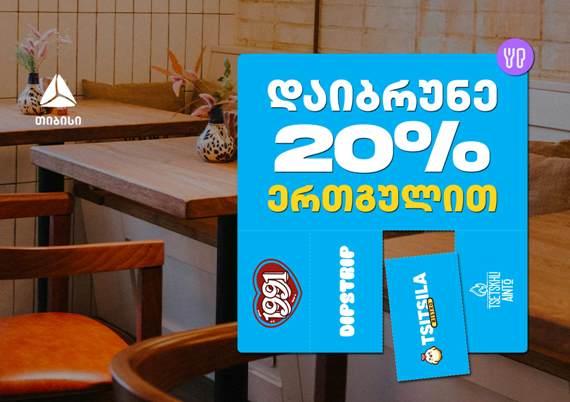 20%-იანი ულიმიტო ქეშბექის დაბრუნებას ოთხ რესტორანში შეძლებთ, თანაც მომენტალურად: