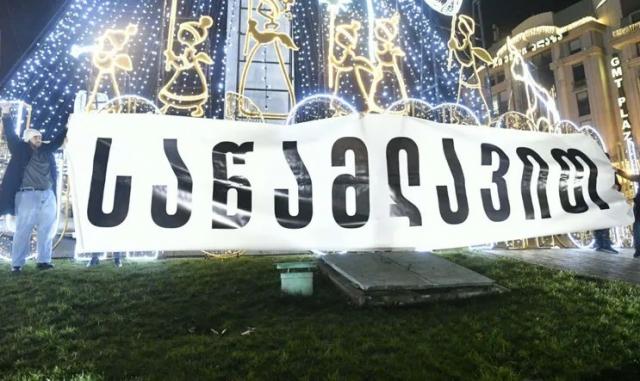 ადგილზე მისულმა დემონსტრანტებმა თავისუფლების მოედანზე არსებულ საახალწლო დეკორაციაზე, რომელსაც აქვს წარწერა „სიკეთით სავსე ქალაქი“ ააფარეს ბანერი წარწერით: „საწამლავით“. მათთან სამართალდამცავები მივიდნენ, რის შემდეგაც აქციის მონაწილეებმა ბანერი დაკეცეს.