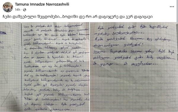ჩემი კითხვების ბრალია თუ უპასუხოდ დატოვებული კითხვების? ყველა მეცოდება, ყველა, ვისაც ჩემს მიერ დასმული კითხვების გამო რამე დაემართა… არ ვიცოდი… არ დავუშვებდი." - წერია გავრცელებულ წერილში.