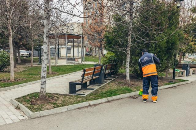 სკვერებში ანალოგიური სამუშაოები სისტემატურად სრულდება, ცენტრალური რაიონული პარკები კი ყოველდღიურად სუფთავდება.