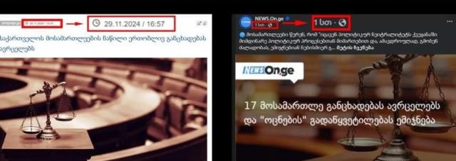 რადიკალური ოპოზიციის პროპაგანდისტული მედია, On.ge, 17 მოსამართლის მიერ 2024 წლის 29 ნოემბერს გავრცელებულ განცხადებას დღევანდელი თარიღით აქვეყნებს და ახალ სტატიად ასაღებს.