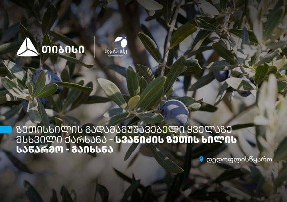 თიბისის მხარდაჭერით, საქართველოში ზეთისხილის გადამამუშავებელი ყველაზე მსხვილი ქარხანა - სვანიძის ზეთისხილის საწარმო - გაიხსნა. ობიექტი დედოფლისწყაროში, ტარიბანას ველზე მდებარეობს და დღეში 150 ტონა ზეთისხილს გადაამუშავებს.