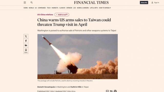 გამოცემის ცნობით, ჩინეთმა "სერიოზული შეშფოთება" გამოთქვა Patriot-ის, NASAMS-ის და სხვა შეიარაღების სისტემების ტაიპეიში შესაძლო გადაცემასთან დაკავშირებით. დახმარების პაკეტის საერთო ოდენობამ შესაძლოა 20 მილიარდ დოლარს მიაღწიოს.