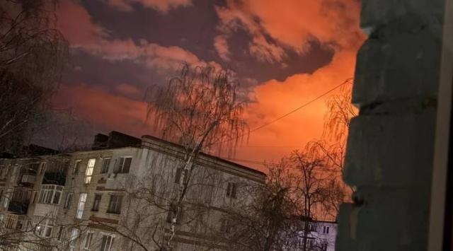 უკრაინულმა ტელეგრამარხებმა გაავრცელეს ვიდეოები, რომლებშიც, მათი თქმით, კსტოვოს ნავთობგადამამუშავებელ ქარხანაში გაჩენილი ხანძარია ასახული.