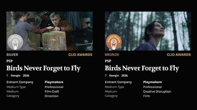 PSP-ს დამოუკიდებლობის დღისადმი (2025) მიძღვნილმა კამპანიამ „ჩიტებს ფრენა არ ავიწყდებათ“ მსოფლიოს პრესტიჟულ შემოქმედებით დაჯილდოვებზე CLIO Awards 2 ჯილდო მოიპოვა: ვერცხლი - Film Direction -და ბრინჯაო - Creative Disruption.